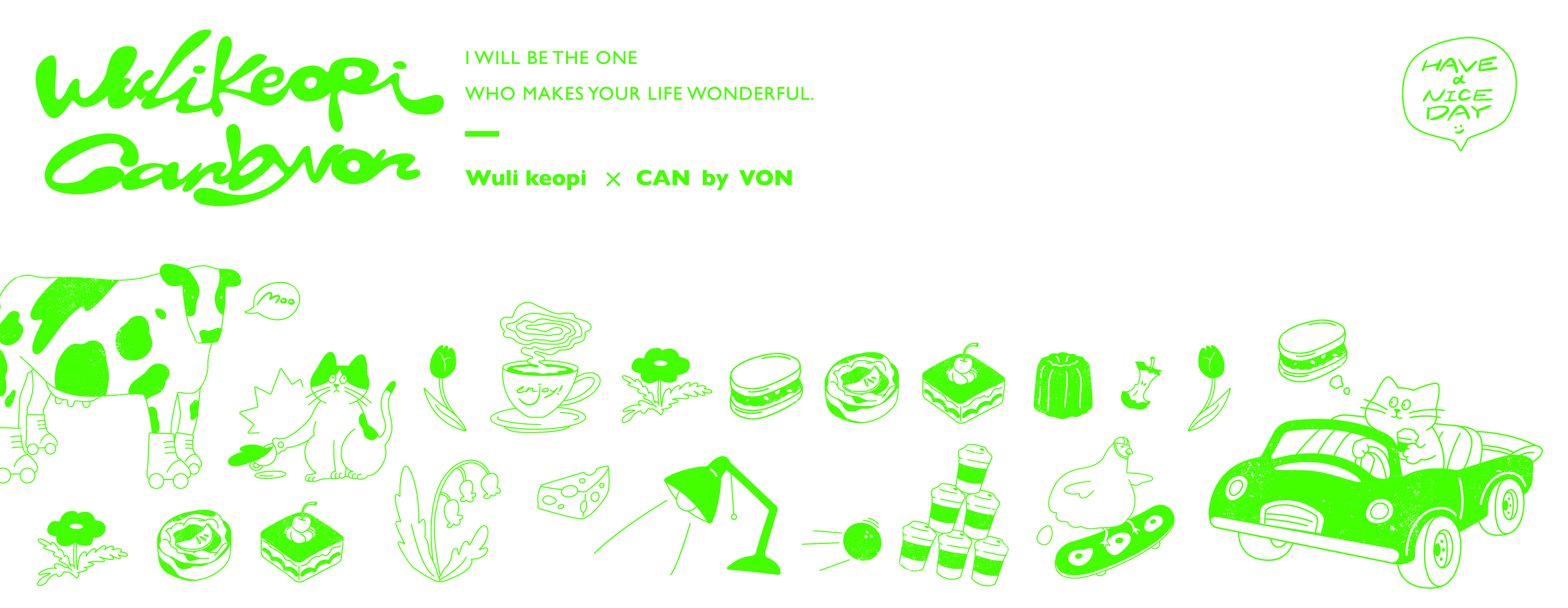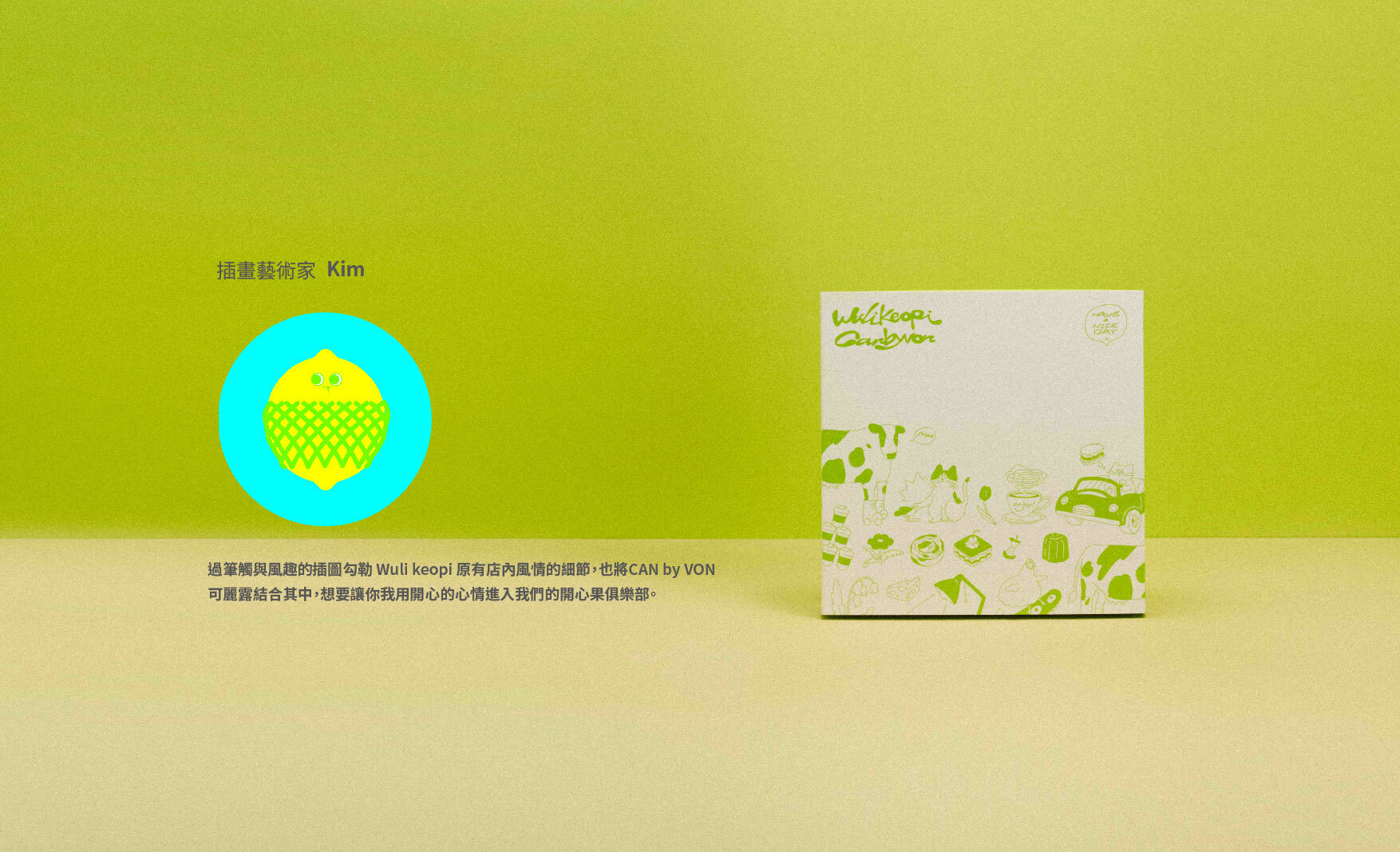 我們聯名了 Wuli Keopi 與CAN by VON 一起創造開心果俱樂部,同時也邀請了新銳插畫家Kim為我們創作專屬插畫包裝。